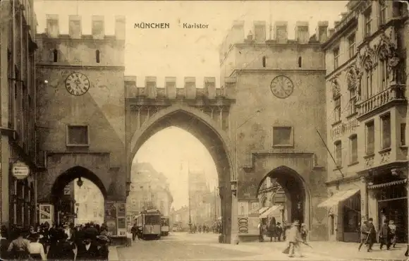 Ak München Bayern, Karlstor, Straßenbahn