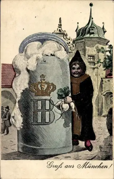 Ak München Bayern, Münchner Kindl mit Bierkrug und Radi