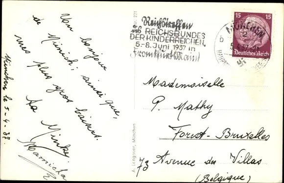 Zustand, siehe Scan, gelaufen, 1937 - ca 14 cm X 9 cm