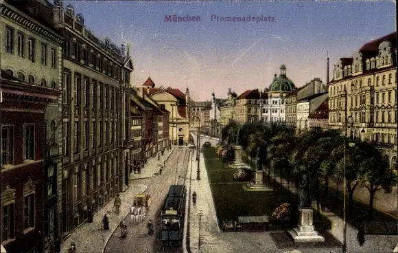 Ak München Bayern, Promenadenplatz, Straßenbahn, Denkmal