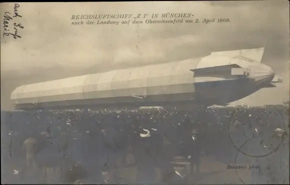 Ak München Bayern, Reichsluftschiff Z1 nach der Landung auf dem Oberwiesenfeld 1909, Zeppelin