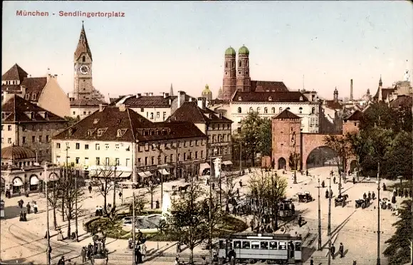 Ak München Bayern, Sendlinger Tor Platz, Straßenbahn
