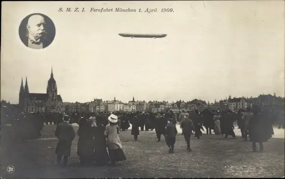 Ak München Bayern, Zeppelin Z I, Fernfahrt 1. April 1909, Luftschiff