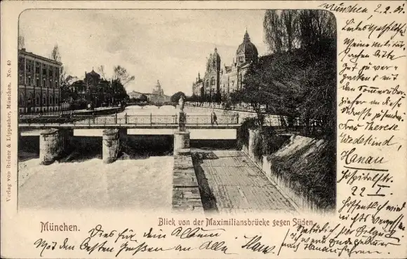 Ak München, Blick von der Maximiliansbrücke gegen Süden