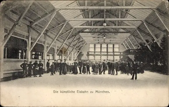 Ak München, Die künstliche Eisbahn, Schlittschuhläufer