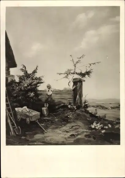 Ak München, Ein Junge steht vor einem Bauernhaus.
