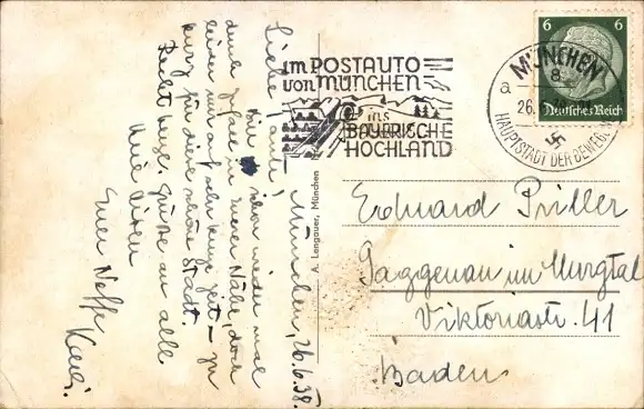 Zustand, siehe Scan, gelaufen, 1938 - ca 14 cm X 9 cm