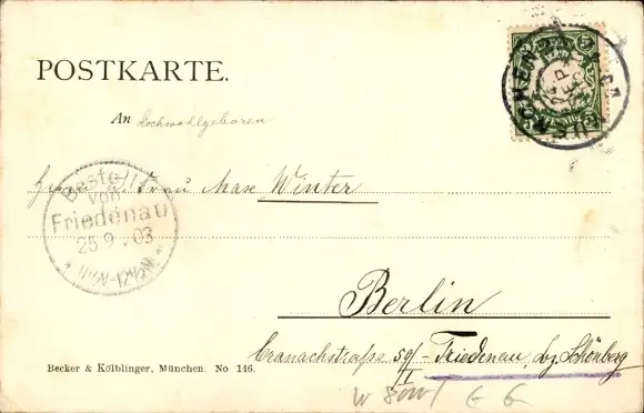 Zustand siehe Scan, 1903, gelaufen - ca 14 cm X 9 cm