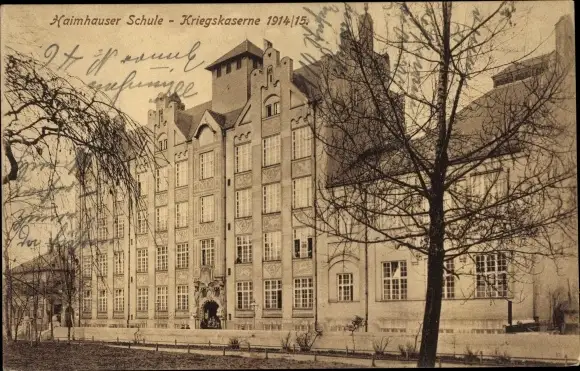 Ak München, Haimhauser Straße, Haimhauser Schule, Kriegskaserne 1914/15