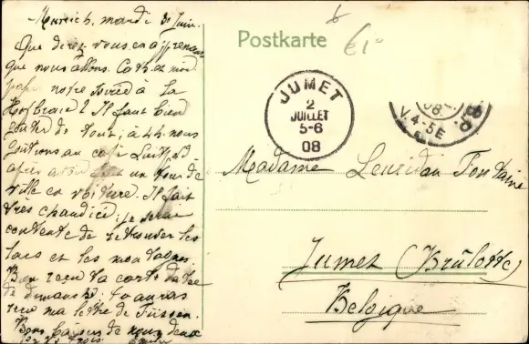 Zustand, siehe Scan, gelaufen, 1908 - ca 14 cm X 9 cm