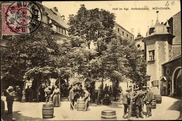 Ak München, Hofbräuhaus, Hof, Gäste, Fässer