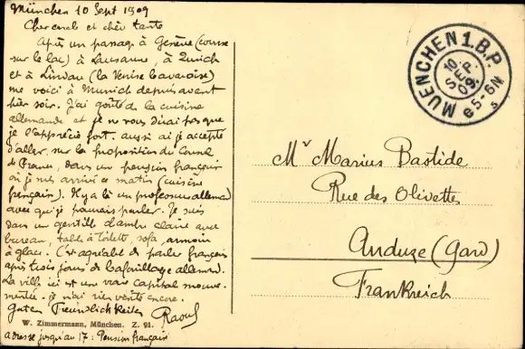 Zustand, siehe Scan, gelaufen, 1909 - ca 14 cm X 9 cm