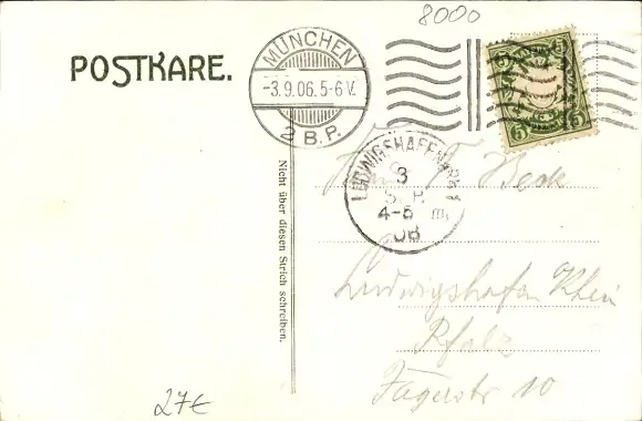 Zustand, siehe Scan, gelaufen, 1906 - ca 14 cm X 9 cm