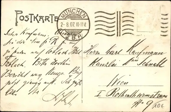 Zustand, siehe Scan, gelaufen, 1907 - ca 14 cm X 9 cm