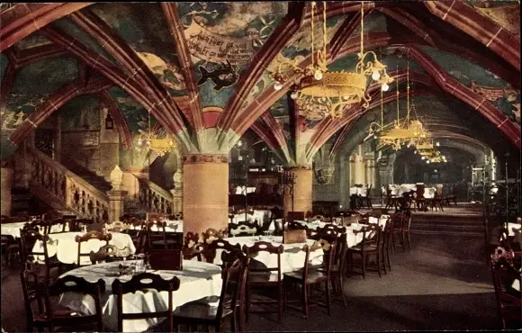 Ak München, Innenansicht des Ratskellers, Lüster, Tische