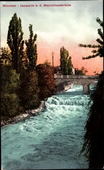Ak München, Isapartie b. d. Maximiliansbrücke