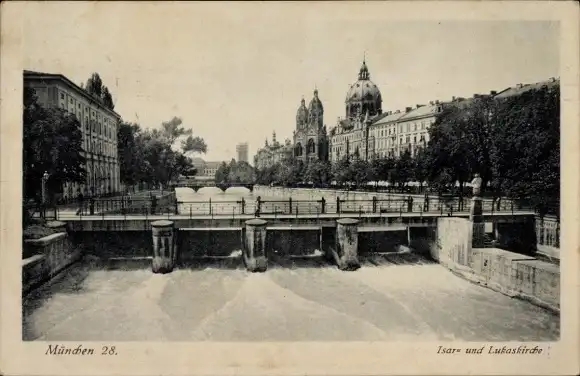 Ak München, Isar, Brücke, Lukaskirche