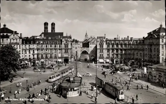 Ak München, Karlsplatzrondell, Straßenbahnen
