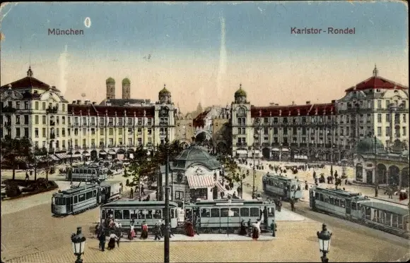 Ak München, Karlstor-Rondel, Straßenbahnen, Passanten