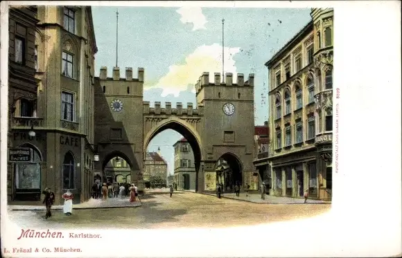 Ak München, Karlstor, Turmuhr