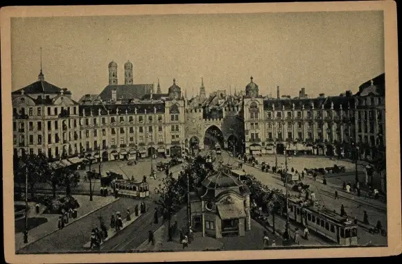 Ak München, Karlstorrondell, Straßenbahn
