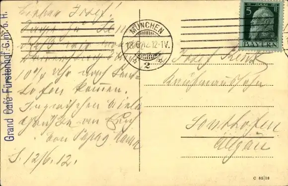 Zustand, siehe Scan, gelaufen, 1912 - ca 14 cm X 9 cm