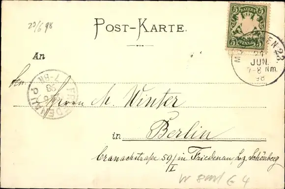 Zustand, siehe Scan, gelaufen, 1898 - ca 14 cm X 10 cm