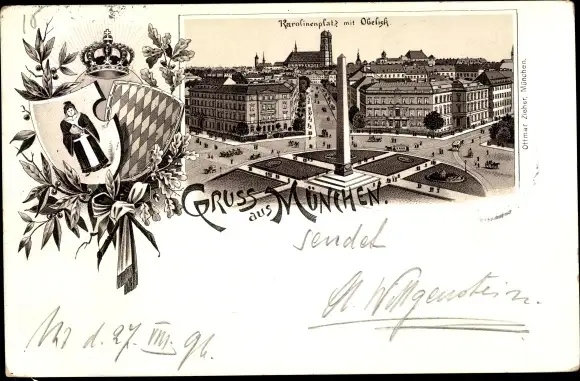 Ak München, Karolinenplatz mit Obelisk, Wappen