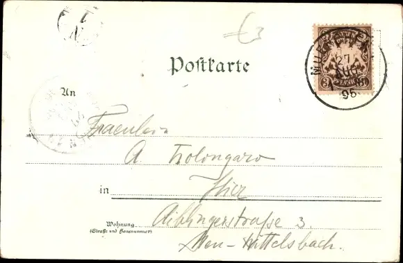 Zustand, siehe Scan, gelaufen, 1896 - ca 14 cm X 9 cm