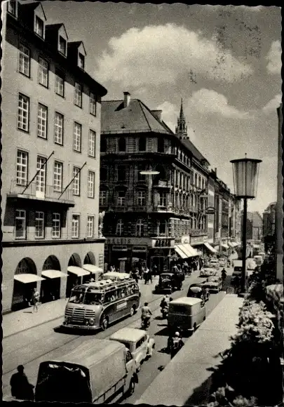 Ak München, Kaufingerstraße, Busse, Autos, Mopeds