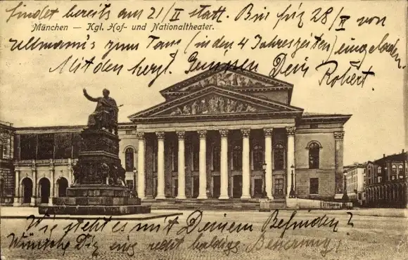 Ak München, Kgl. Hof- und Nationaltheater, Denkmal