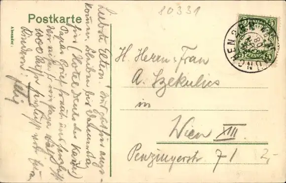Zustand, siehe Scan, gelaufen, 1908 - ca 14 cm X 9 cm