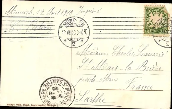 Zustand, siehe Scan, gelaufen, 1910 - ca 14 cm X 9 cm