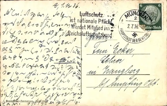 Zustand, siehe Scan, gelaufen, 1936 - ca 14 cm X 9 cm