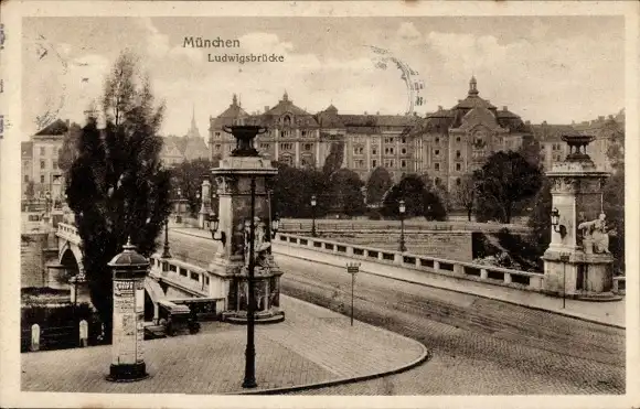 Ak München, Ludwigsbrücke, Litfaßsäule