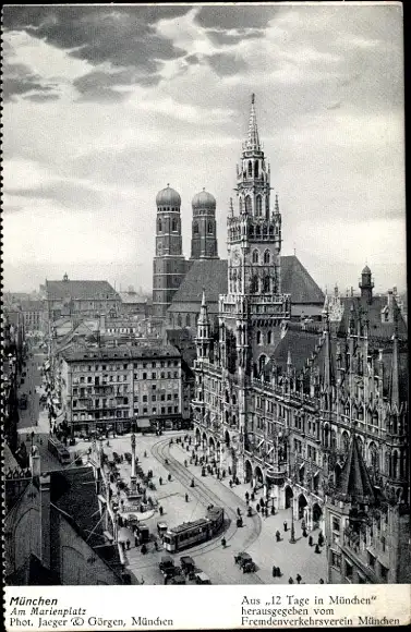 Ak München, Marienplatz, Frauenkirche, Straßenbahn