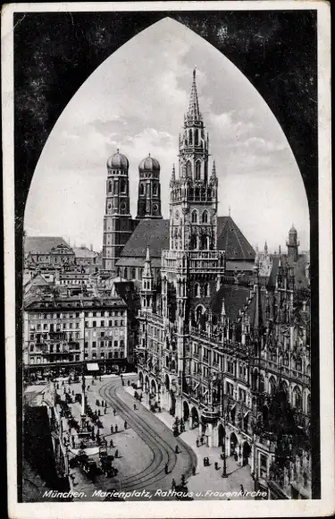 Ak München, Marienplatz, Rathaus, Frauenkirche