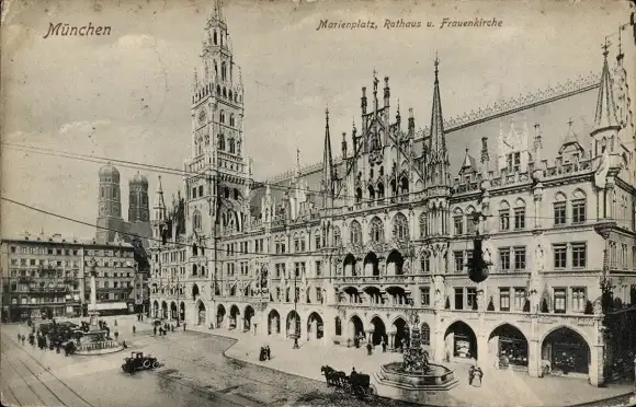 Ak München, Marienplatz, Rathaus, Frauenkirche