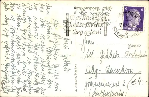 Zustand, siehe Scan, gelaufen, 1943 - ca 14 cm X 9 cm