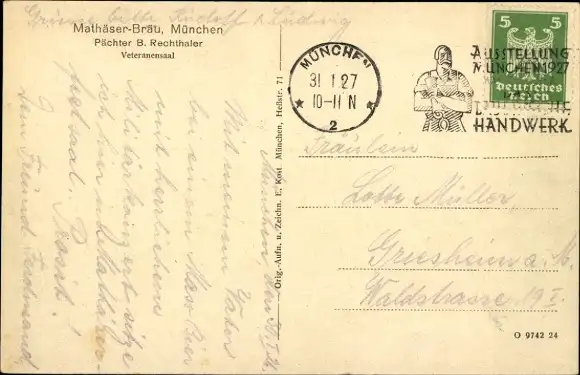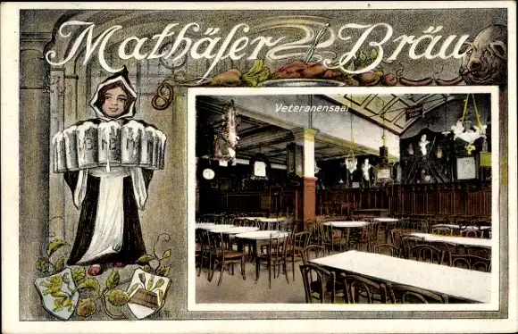 Ak München, Mathäser-Bräu, Veteranensaal, Münchner Kindl