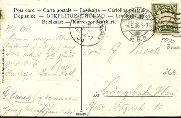 Zustand, siehe Scan, gelaufen, 1906 - ca 14 cm X 9 cm