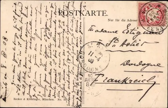 Zustand, siehe Scan, gelaufen, 1908 - ca 14 cm X 9 cm