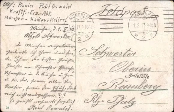 Zustand, siehe Scan, gelaufen, 1917 - ca 14 cm X 9 cm