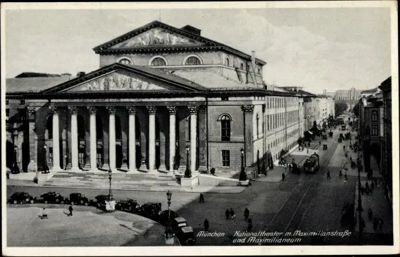 Ak München, Nationaltheater mit Maximilianstraße und Maximilianeum