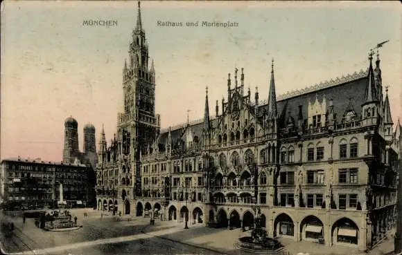 Ak München Oberbayern, Rathaus, Marienplatz