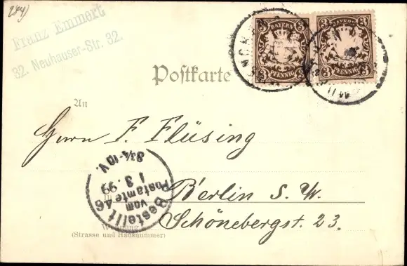 Zustand, siehe Scan, gelaufen, 1899 - ca 14 cm X 9 cm