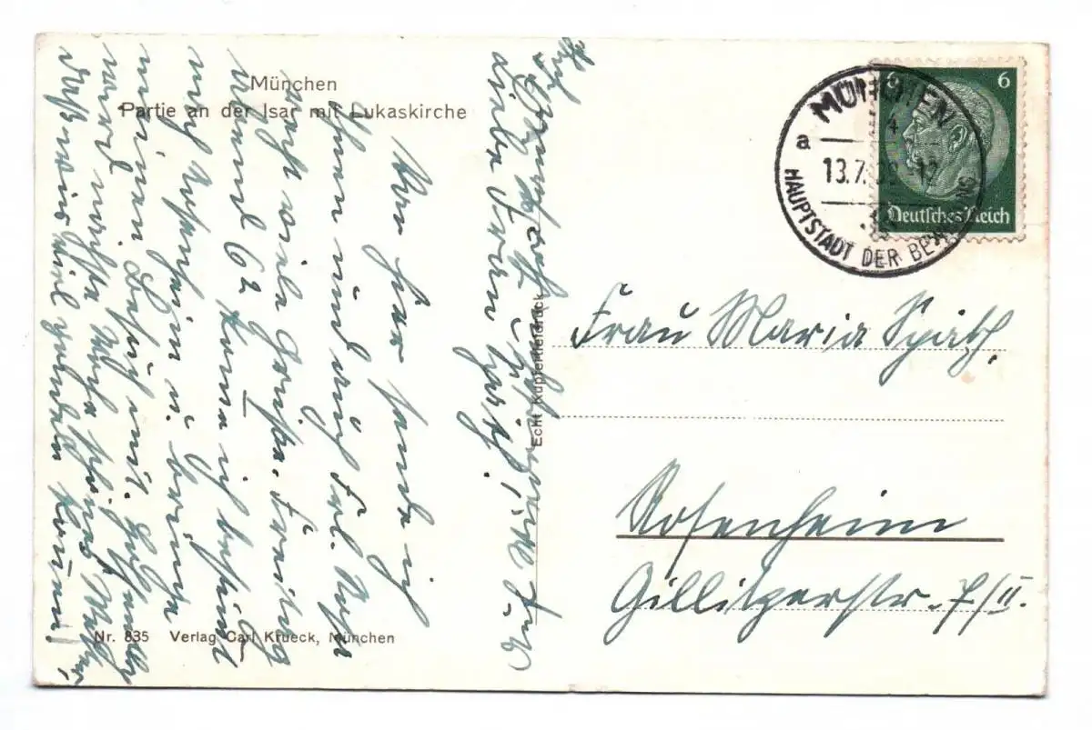 Ak München Partie an der Isar mit Lukaskirche 1939