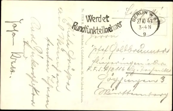Zustand, siehe Scan, gelaufen, 1941 - ca 14 cm X 9 cm