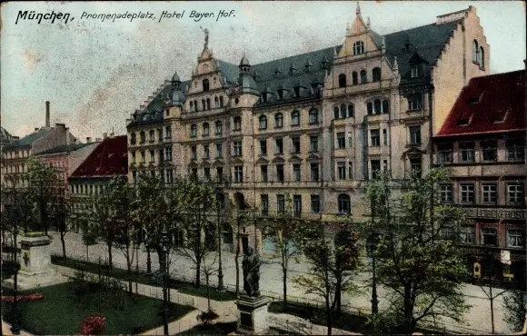Ak München, Promenadenplatz, Hotel Bayrischer Hof, Denkmal