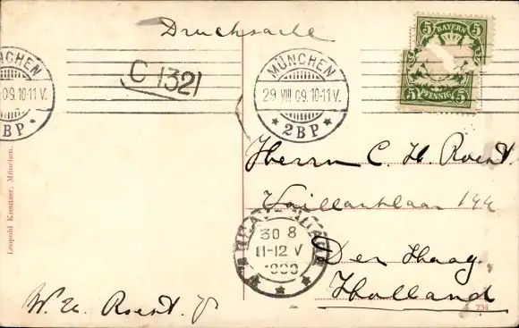 Zustand, siehe Scan, gelaufen, 1909 - ca 14 cm X 9 cm